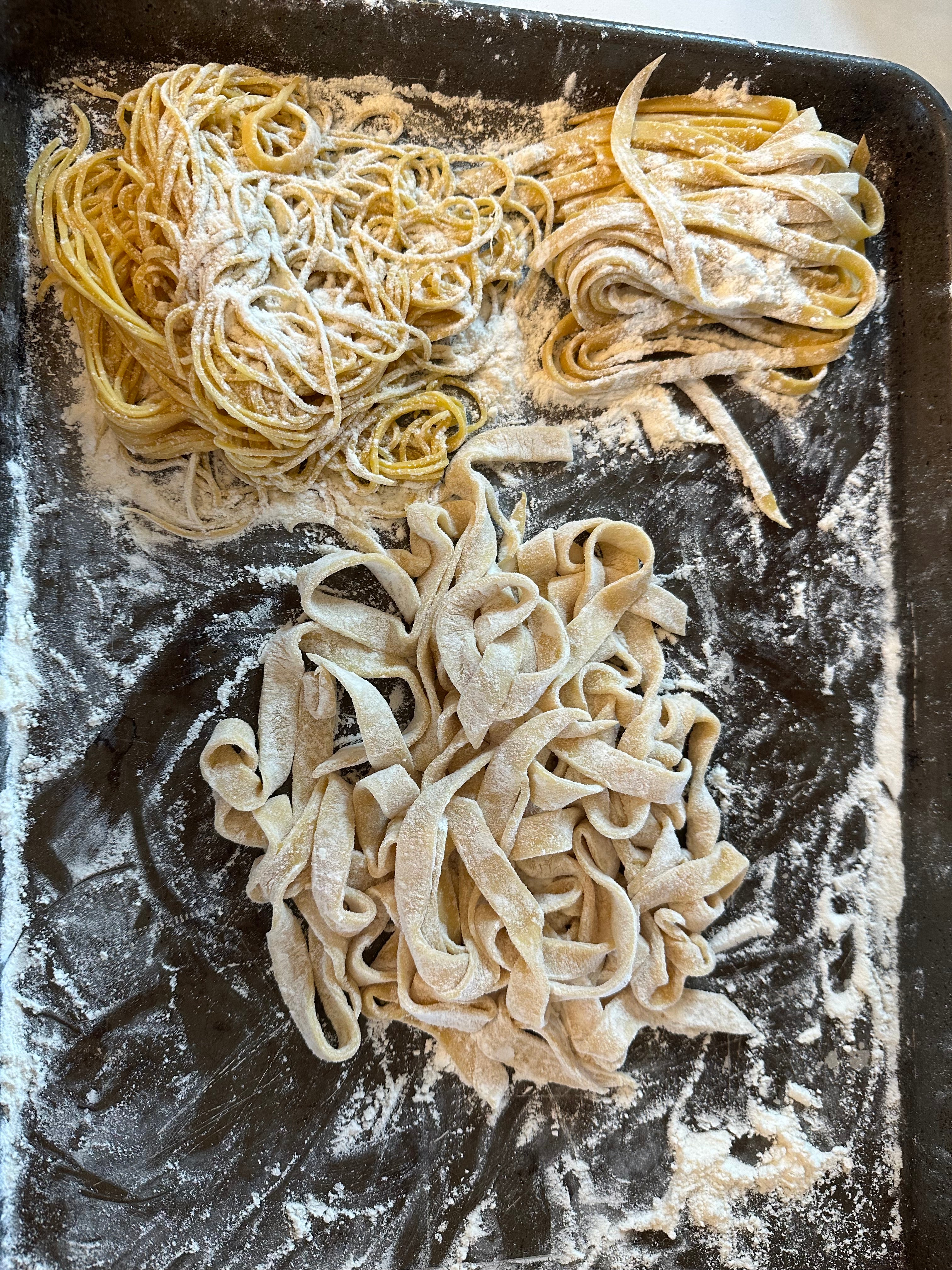 Your pasta is prepared by hand on Monday — rolled, cut, and shaped with care.